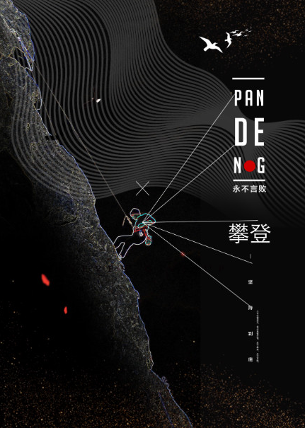 深色背景寓意前方道路的的种种困难,山代表前方道路的曲折,利用剪影霓虹线条寓意不管前方道路怎么样,我们都会脚踏实地,砥砺前行,坚守理想信念。
