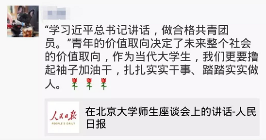 艺术设计学院环境设计1702团支部李丽君:“深刻学习习近平总书记在北大的讲话精神,对自己的人生有了更清晰的认识,我们要不断通过多读书,读经典书来提高自己的综合素质和文化底蕴,将书中得来的领悟用到实处,服务好同学的同时,树立好榜样。”