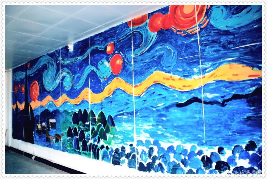 大一工程造价专业学生张菀祯说:“教室背景墙是由我们班同学集体绘画而成,从选图、构架、上色……大家都很积极,像一个温暖的大家庭,我们班就是一颗大树,我们都是大树的枝丫。”