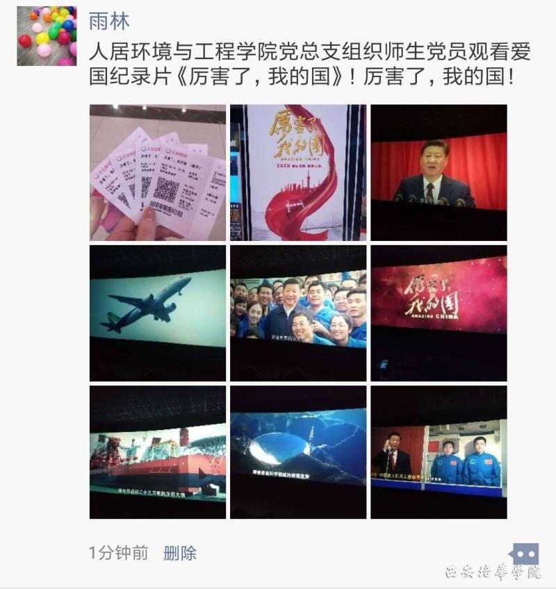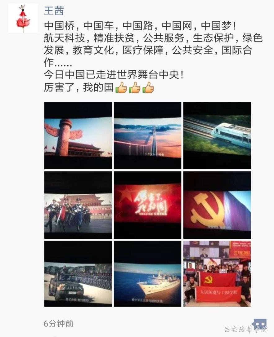 为了使广大党员能够切实感受到党和国家事业的蓬勃发展和卓越成就,人居环境与工程学院党总支于3月14日组织部分师生党员观看了《厉害了,我的国!》大型纪录片,让大家目睹五年来新时代中国取得的伟大成就,凝聚思想共识,弘扬中国精神。