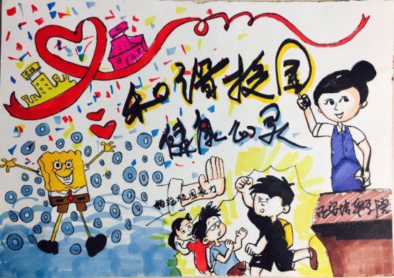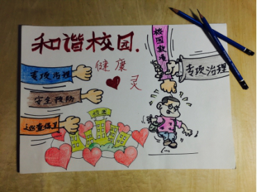 作品简介:本作品主要表达了和谐的校园需要学校的干预和治理,同时也需要同学间团结友善,有一颗健康的心灵。