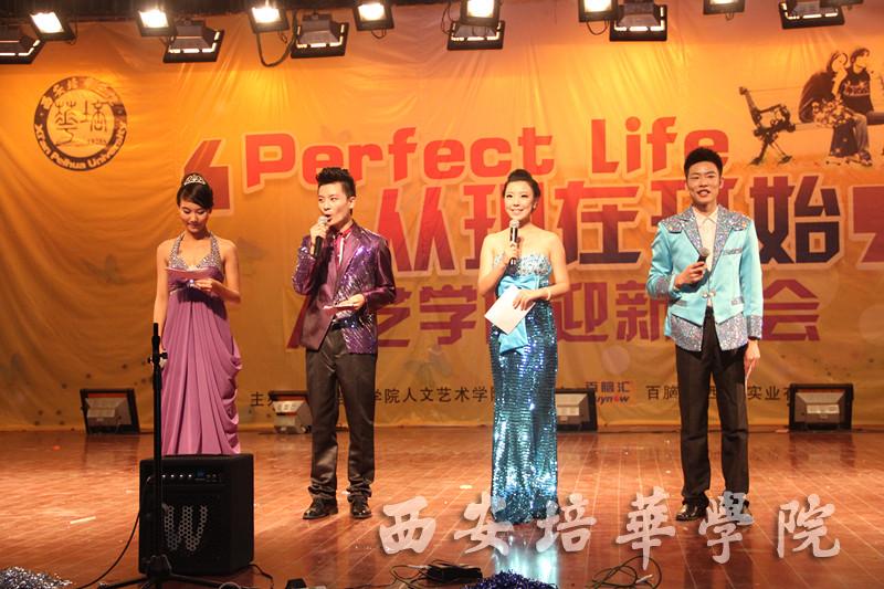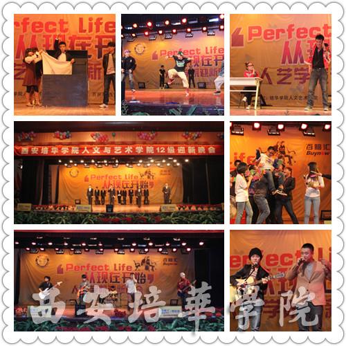一场由我院学生自编自排带来的极具动感和青春活力的poping开场舞拉开了本届迎新晚会的序幕。本次迎新晚会共有14个精彩的节目。它涵盖了民族、流行、时尚、性感等各种元素于一体,囊括了舞蹈、歌唱、舞台剧、小品等各式形式。来自播音与主持专业的大一新生高毓以一曲热情洋溢的《Bad Boy》展示了青春的活力,掀起了本次晚会的第一轮高潮。由李爱琴处长带领学生表演的《太极拳》刚柔并济,变幻无形,同样震慑住了全场观众,在热烈的掌声中,李爱琴处长微笑谢幕。整场晚会表演形式多样,精彩连连。典雅柔美的民舞表演使人不禁联想到“一笑倾人城,再笑倾人国”的绝美;真实幽默的小品逗得场下笑声不断;刚健阳光的武术激情无限;古典优雅的古筝独奏沁人心脾。舞台剧《试戏》与乐队《自由》的表演更是展现了人文与艺术学院之风采,在场师生无不为之欢呼喝彩。