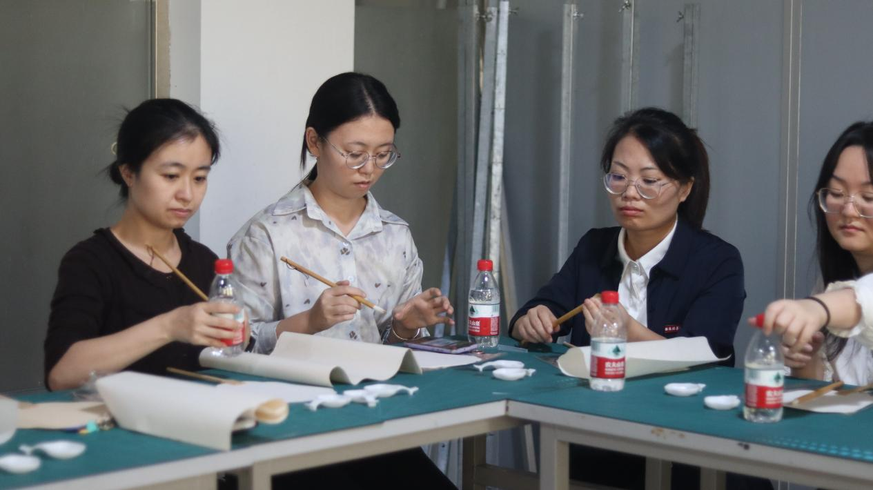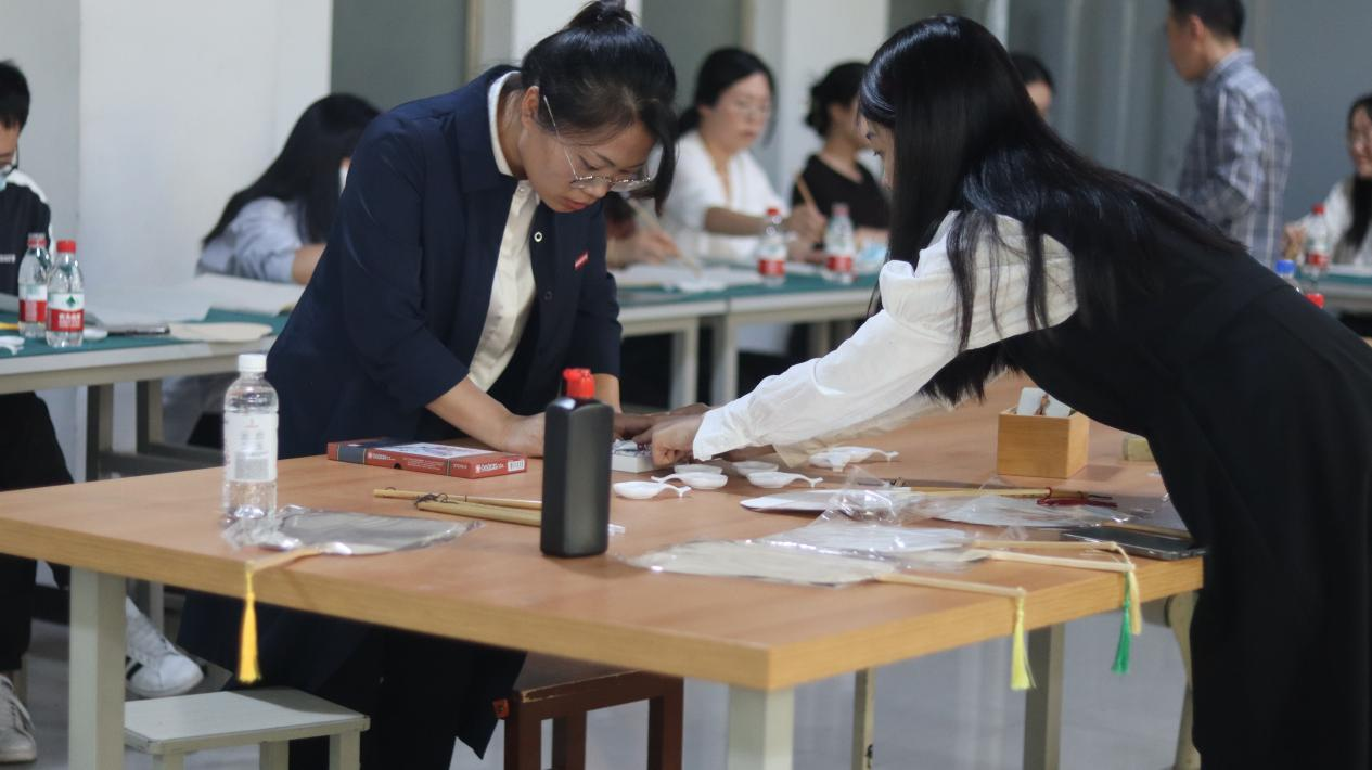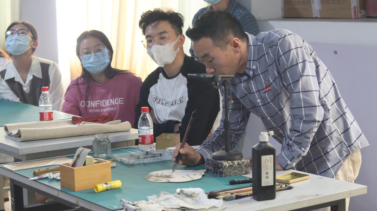 为了进一步加强师德师风建设,提升我校教师教学和科研能力水平,提高教育教学质量,积极参与和推进应用型课程改革及课程思政建设,增加我校校园艺术文化气氛、弘扬中国传统文化,增进各单位间的学习交流,我院于2022年9月28日下午主办2022年度教学科研沙龙活动——墨韵师风。此次活动分为两个部分,第一部分由建筑与艺术设计学院院长助理刘清颖老师带领大家学习“修师德、树师风”主题讲座。第二部分由本院视觉传达设计专业老师甄昊结合自身多年的中国画教学及丰富的实践经验,以中国画——扇面为主题,让每位教师在现场用亲自创作的方式,更全面地体验与感受中国传统文化艺术。