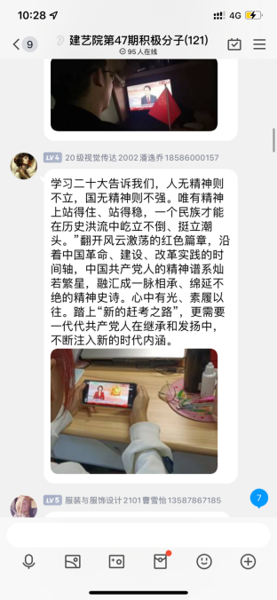 中国共产党第二十次全国代表大会,是在全党全国各族人民迈上全面建设社会主义现代化国家新征程、向第二个百年奋斗目标进军的关键时刻召开的一次十分重要的大会。为了迎接中国共产党第二十次全国代表大会的胜利召开,根据校党委的统一部署,10 月16 日,建筑与艺术设计学院党委组织学院师生共同观看党的二十大开幕会。我院51名教工中共党员,各学生党支部中共党员150余人及学院入党积极分子近300人认真听取习近平总书记所作的大会报告。大家聚精会神听报告、全神贯注做笔记、心潮澎湃谈体会,纷纷表示要充分利用党的二十大胜利召开这一契机,努力向优秀看齐,查找自身不足,做好本职工作,为学院建设发展贡献自己的力量。