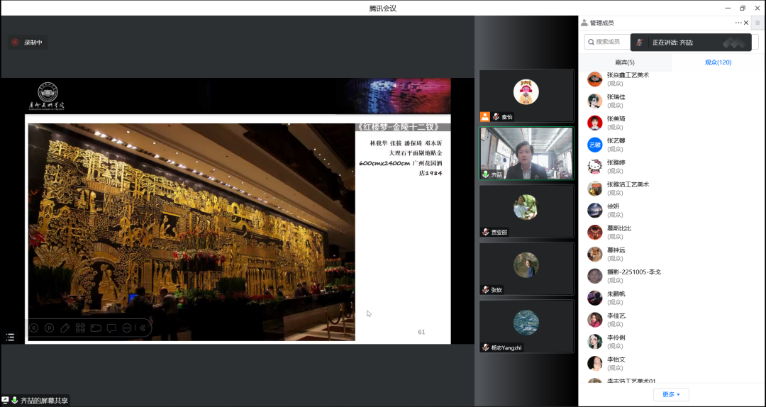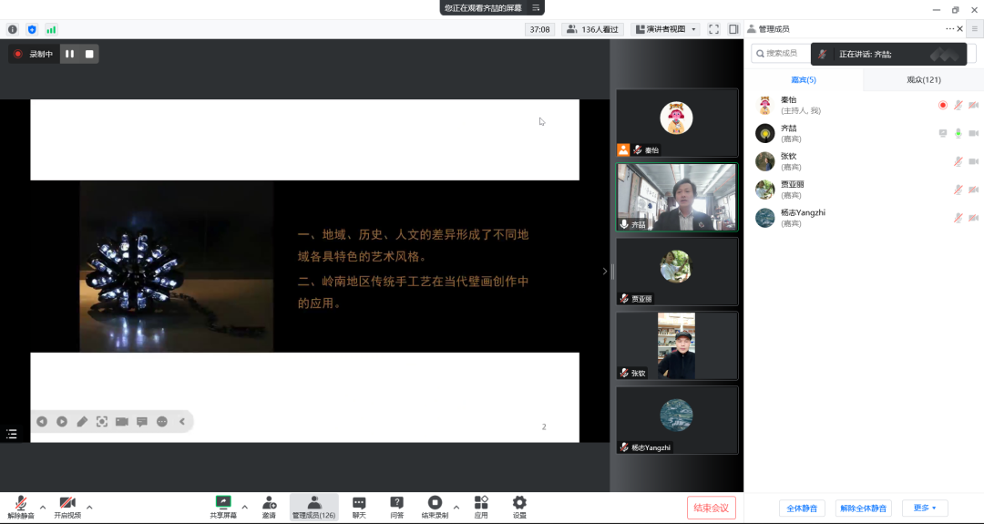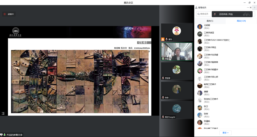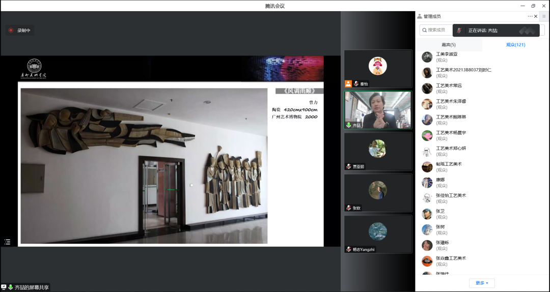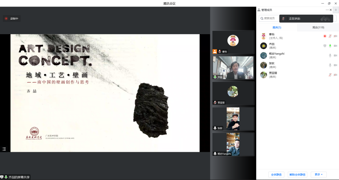 2022117日下午,建筑与艺术设计学院工艺美术专业学术大讲堂(第一季)系列讲座第三场顺利进行,特邀广州美术学院教授,博士研究生导师--齐喆教授举办了地域 工艺 壁画--南中国壁画创作与思考主题讲座。