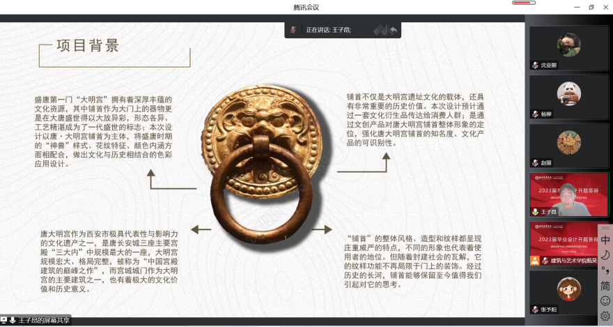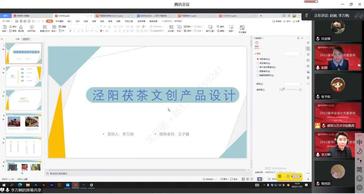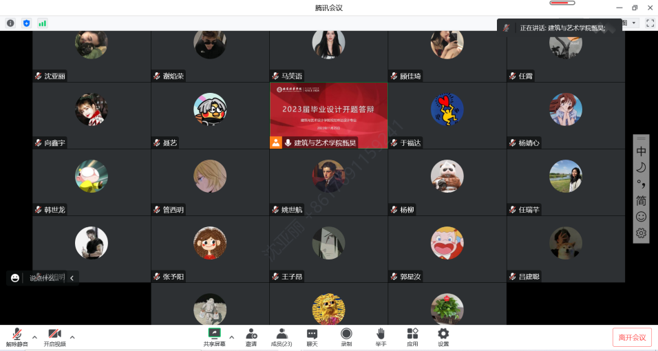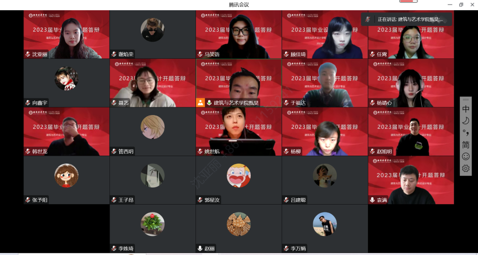 2022年11月25日,视觉传达设计专业利用线上腾讯会议组织开展2023届毕业设计开题答辩工作。视觉传达设计教师甄昊老师简要概述本次线上开题答辩的环节以及开题答辩环节中需要注意的问题担任本次答辩评委的老师有答辩组组长赵丽副教授、学科带头人张予阳老师、专业教师杨柳老师、袁满老师,李姝琦老师担任本次答辩的督导,沈亚丽为答辩秘书,本次参与开题答辩的学生共计16名。