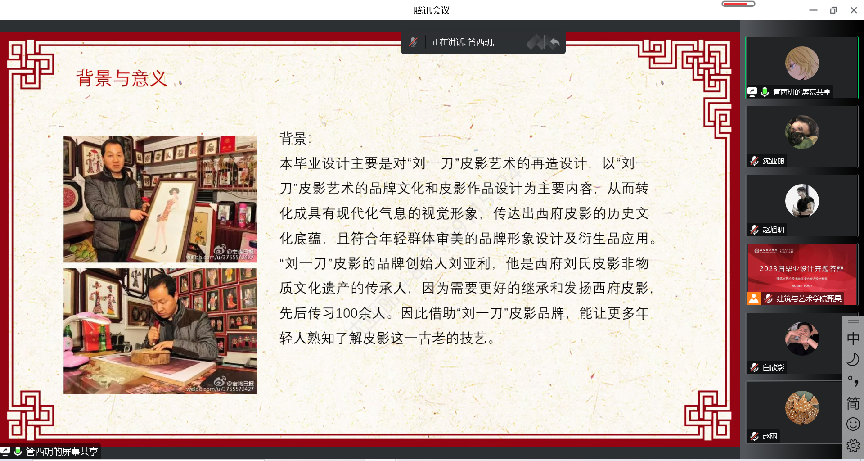 视觉传达设计答辩组所有老师线上对答辩同学进行提问并指正,逐一指出同学们的不足之处。答辩老师以及答辩组本着科学严谨、客观公正的原则,对答辩学生的毕业设计及论文框架进行指导与矫正。让毕业生的毕业论文更加规整,提升毕业论文质量。