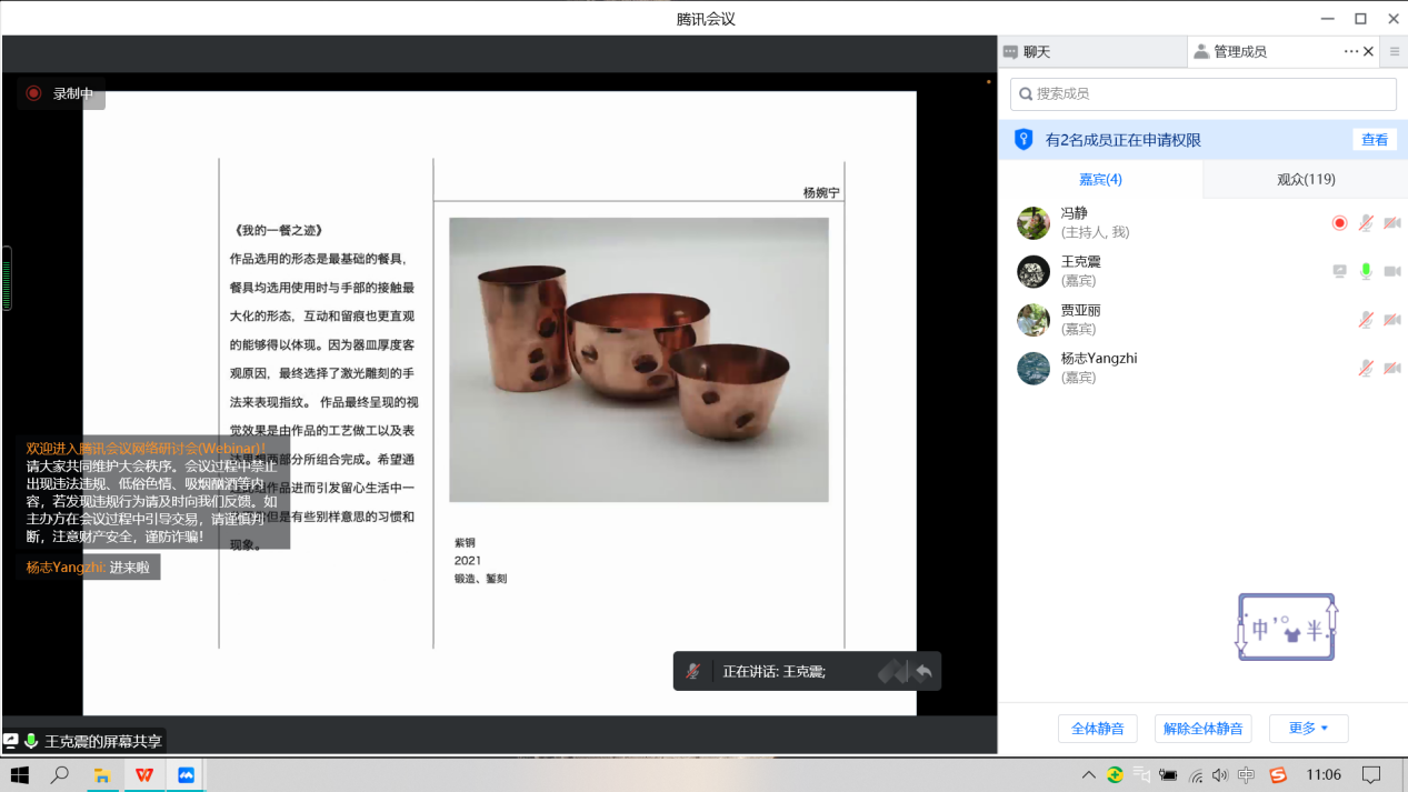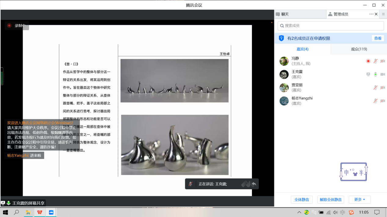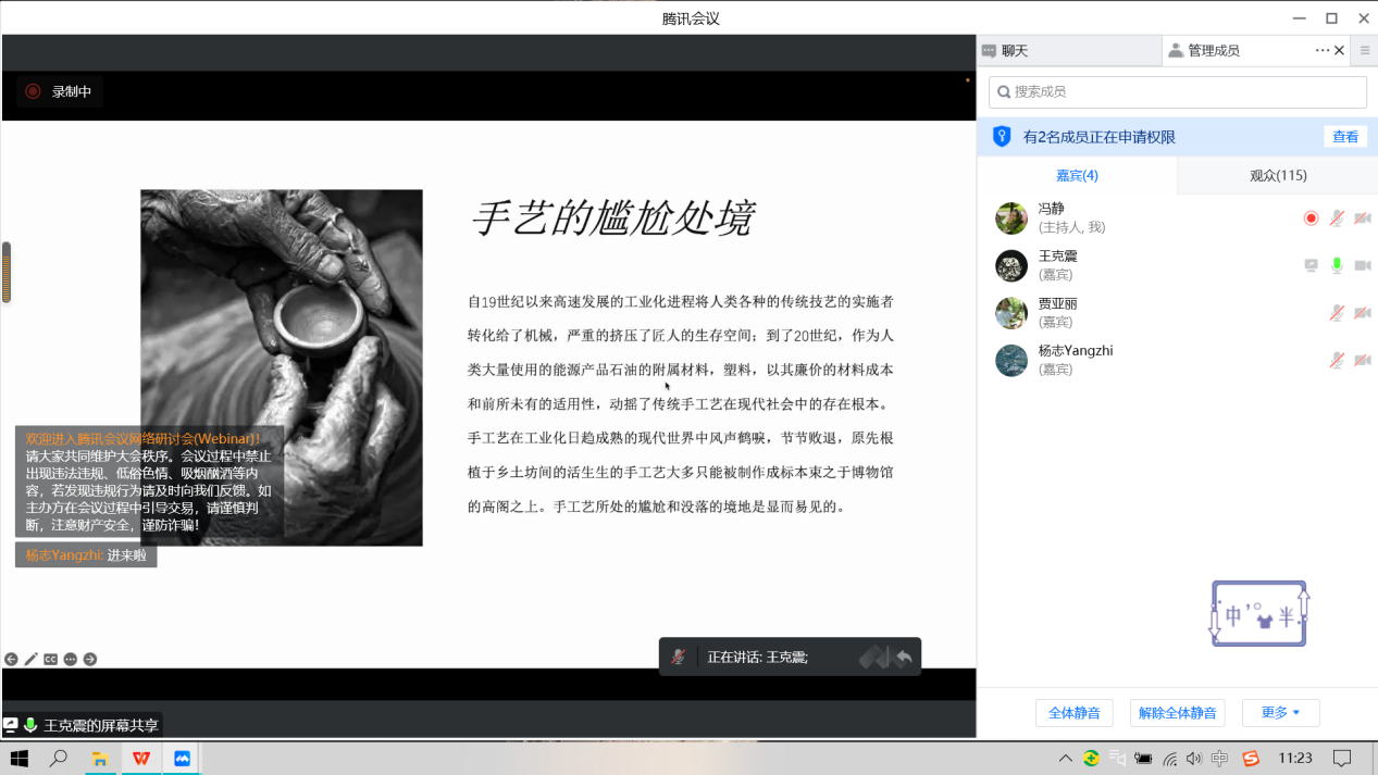 2022年11月24日下午,建筑与艺术设计学院工艺美术专业学术大讲堂(第一季)系列讲座第七场顺利进行,主讲嘉宾王克震副教授以“中国当代手工艺的三重阶”为主题进行本次线上讲座。