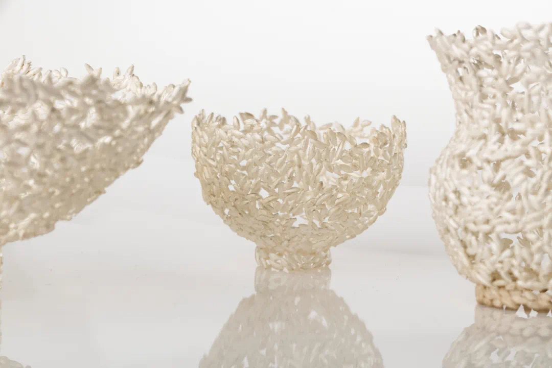 作品选用的形态是最基础的餐具,餐具均选用使用时与手部的接触最大化的形态,互动和留痕也更直观的能够得以体现。作品最终呈现的视觉效果是由作品的工艺做工以及表达思想两部分所组合完成。