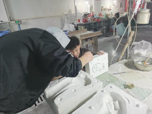 实训期间,学院教师及企业导师共同为学生教授模型翻制和注浆工艺。从模种制作、石膏翻模、注浆到最后成品烧出,每一步都至关重要,稍有失误就会导致作品瑕疵。在学习的过程中,不仅让学生掌握到扎实的工艺技法,同时也让学生认识到模型制作在产品设计中的重要地位。