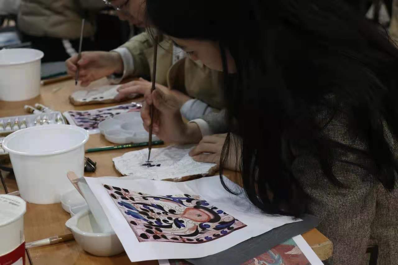 为增加我校校园艺术文化气氛、弘扬中国传统文化,增进教师之间的艺术交流、讨论,激发大家对传统艺术的关注和了解。我院于2021年4月21日下午主办本学期第二期教师沙龙活动,张钦老师结合自身多年壁画教学及丰富的实践经验,以敦煌壁画为主题,让每位教师在现场用亲自临摹绘制的方式,更全面的体验与感受这种伟大的艺术。