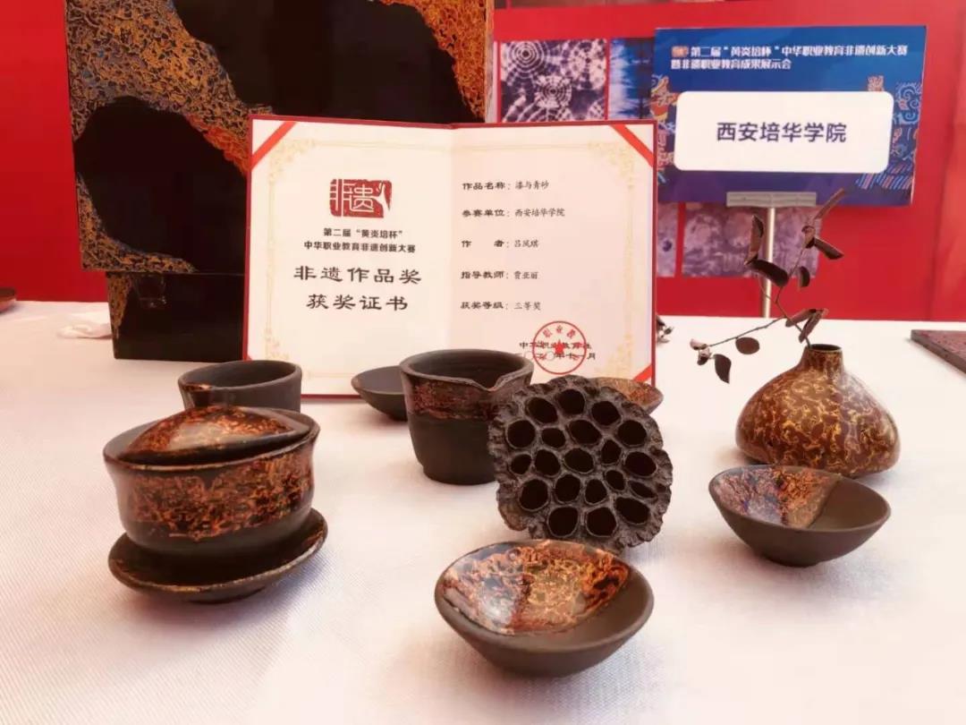 第二届“黄炎培”杯中华职业教育非遗创新大赛暨非遗职业教育成果展示会于11月15日在重庆开赛。西安培华学院建筑与艺术设计学院时尚系主任副教授李媛老师、副主任贾亚丽老师带领我院学生及作品参加了此次比赛。本次大赛以“传承”为出发点,各参赛院校通过本次大赛的平台,展示来自不同地区、不同院校的非遗相关教学成果。在我院老师的指导与同学几个月的不断努力下,工艺美术专业的漆器作品与服装专业的设计作品受到了各院校参赛人员及社会人士的赞赏与好评。
