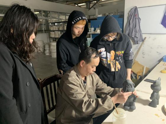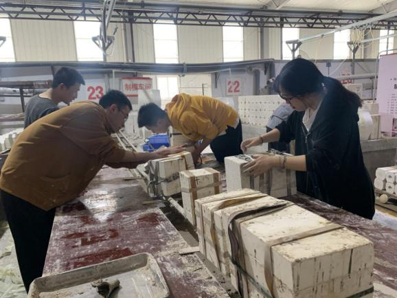 实训期间,学院教师及企业导师共同为学生教授模型翻制和注浆工艺。从模种制作、石膏翻模、注浆到最后成品烧出,每一步都至关重要,稍有失误就会导致作品瑕疵。在学习的过程中,不仅让学生掌握到扎实的工艺技法,同时也让学生认识到模型制作在产品设计中的重要地位。