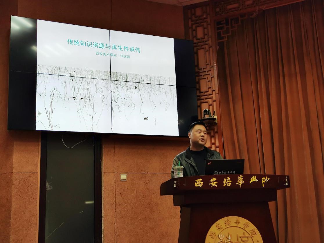2020年12月16日下午,我院视觉传达设计专业在汇知楼举办了题为《传统知识资源与再生性承传》的专业讲座,讲座是由西安美术学院副教授张西昌博士主讲,此次讲座是我院主导的“大师工坊”系列活动之一。