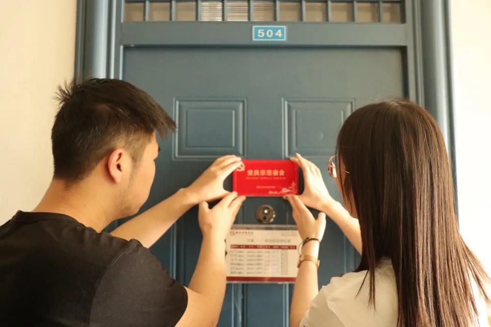 西安培华学院党委委员、学工部部长、学生服务中心主任蔡亮、建筑与艺术设计学院党委书记权勇太为党员宿舍代表授牌
