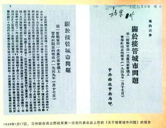 “这幅照片是1949年1月17日,西北局书记、西北军区政委习仲勋在西北野战军第一次党代表会议上作的《关于接管城市问题》的报告,十分珍贵。”窦庆说。