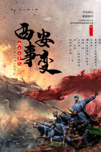 战争题材的作品通常会受到很多人的喜爱和关注,该作品以西安事变故事为背景,采用插画的形式展开海报设计,描绘了国共两党合作,一致抗日的故事,为中国社会的发展起到了无可替代的作用,作品以火光、红旗等映射的基调来展现当时的激烈,使该作品达到视觉冲击力强的效果,进一步表现了只有具有强烈爱国思想的人,才可能视民族兴亡为己任。