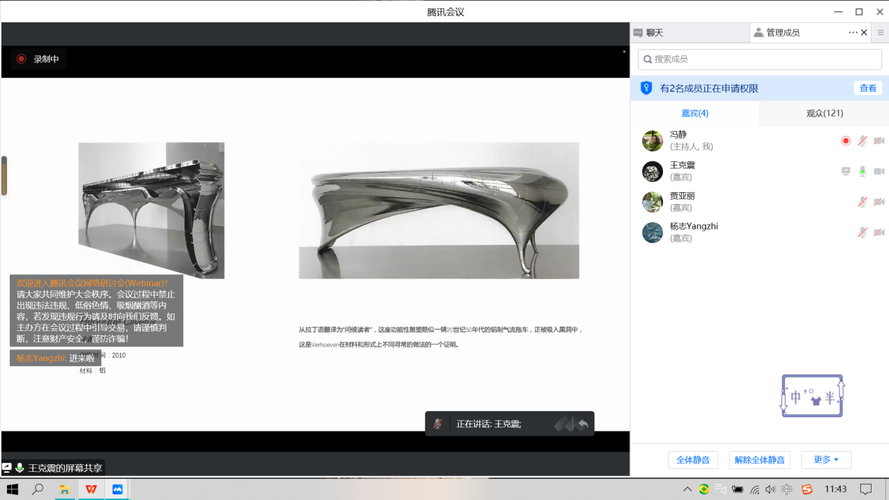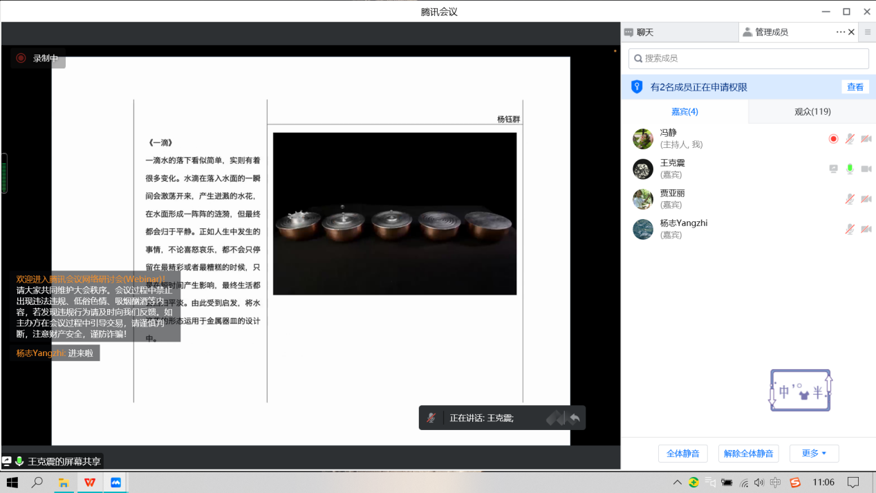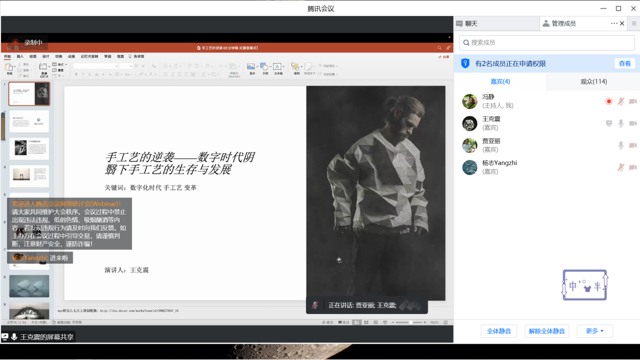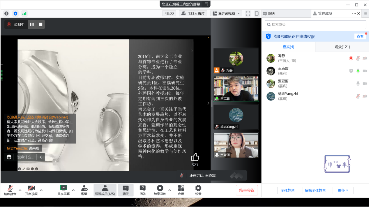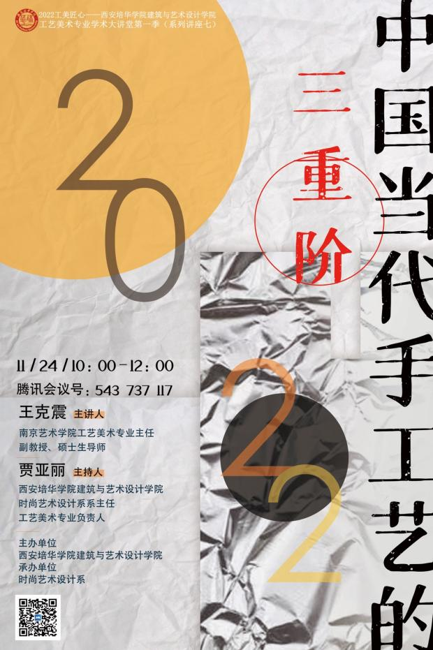 2022年11月24日下午,建筑与艺术设计学院工艺美术专业学术大讲堂(第一季)系列讲座第七场顺利进行,主讲嘉宾王克震副教授以“中国当代手工艺的三重阶”为主题进行本次线上讲座。