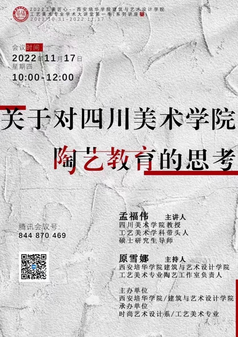 为全面贯彻落实新专业科学发展,加强内涵式发展,扎实推进审核评估工作,紧紧围绕地方性、应用型的专业建设定位,培养和造就综合素质高、应用能力强的应用型工艺美术本科人才,工艺美术专业邀请行内专家举办“2022工美匠心——西安培华学院建筑与艺术设计学院工艺美术专业学术大讲堂第一季”