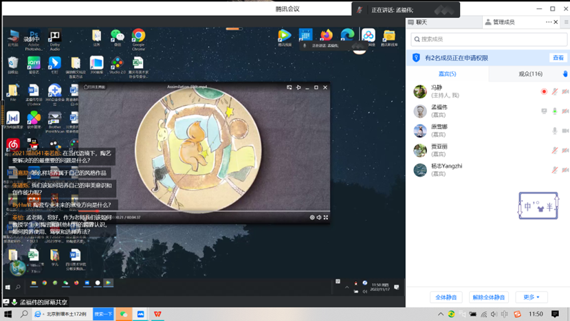 孟福伟教授从对四川美术学院陶瓷教育的定位、四川美术学院陶瓷教育解决什么问题、四川美术学院陶艺教育的历史与现在、对当代陶艺的思考、四川美术学院陶艺特色工作室教学、对四川美术学院研究生的陶艺教学思考、四川美术学院教生作品分享几方面展开了本次讲授。
