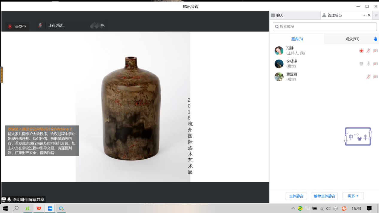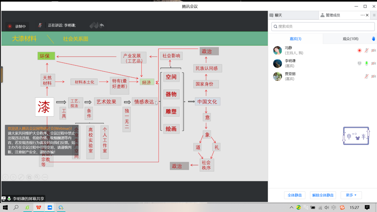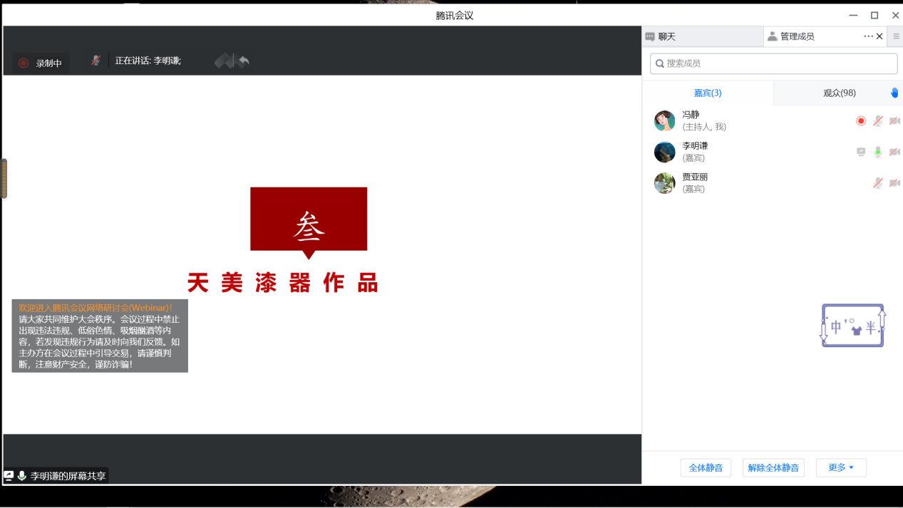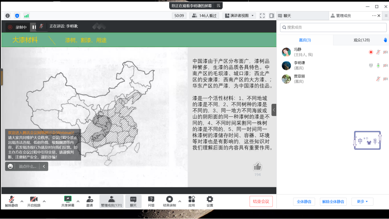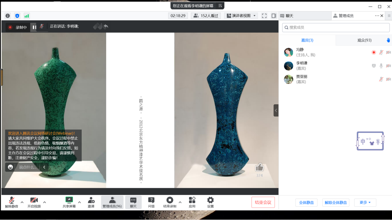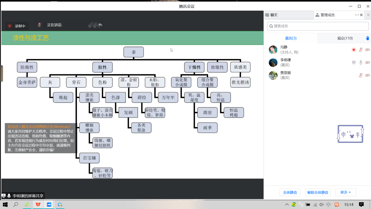 2022年11月14日下午,建筑与艺术设计学院工艺美术专业学术大讲堂(第一季)系列讲座第五场顺利进行,主讲嘉宾李明谦副教授以“漆性管见”为主题展开本次线上讲座。