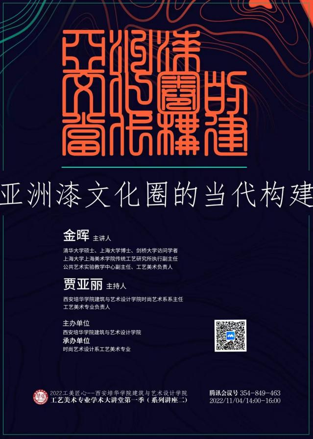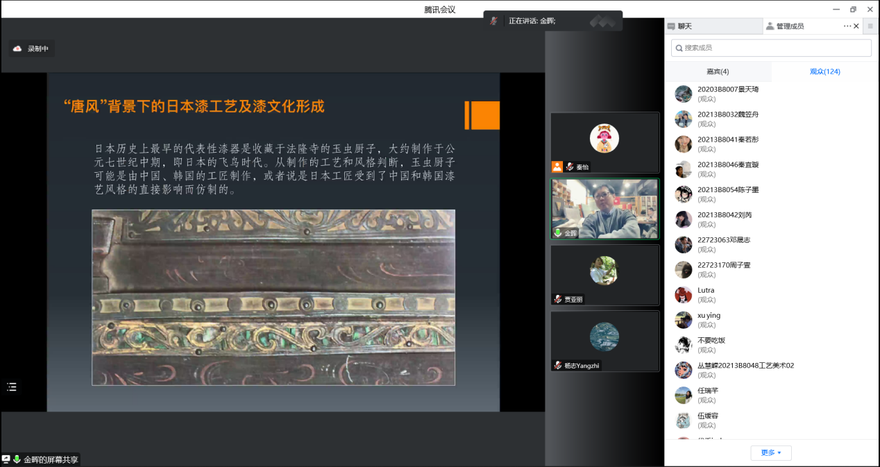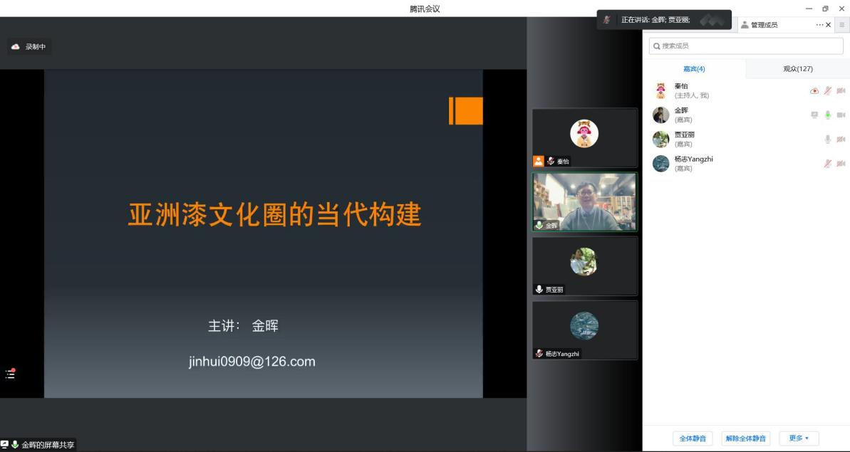 2022年11月4日下午,建筑与艺术设计学院工艺美术专业学术大讲堂(第一季)系列讲座第二场顺利进行,主讲嘉宾金晖教授以“亚洲漆文化圈的当代构建”为主题展开本次线上讲座。