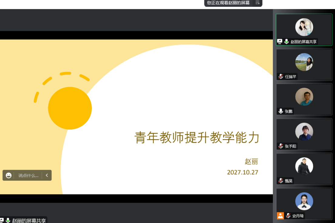 本次教学研讨会,教学督导赵丽老师首先从“备课、授课、结课”三个环节为青年教师分享了关于教学能力提升的方法与经验。赵老师在“备课和课前准备”这一环节中着重提出“功夫在课外”的观点,并从资料的准备、眼界的拓宽以及备课的重点等方面做了经验分享;在“授课”环节中,赵老师主要围绕课“教学有法,教无定法,贵在得法”这一观点,对于课堂教学方面提出了四点需要掌握的教学技能,并要求新进教师要明确教学目标,鼓励新进教师大胆地进行教学改革和实践,提倡多学科交叉混合式教学,将多种知识综合运用在课堂上,不要拘泥于学科限制;在“结课”环节中,赵丽老师着重讲解了“以学生为中心,成果为导向,持续改进”的应用型课程评价方法。