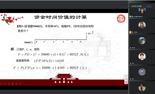 焦会娜老师分享了《工程经济学》课程中的一次支付终值公式学习,深入浅出。鼓励学生在课堂自由讨论,自由发言,并给予加分奖励。同时也提出了以后努力的方向,课堂时间的分配问题以及线上讲解复杂计算公式的技巧。