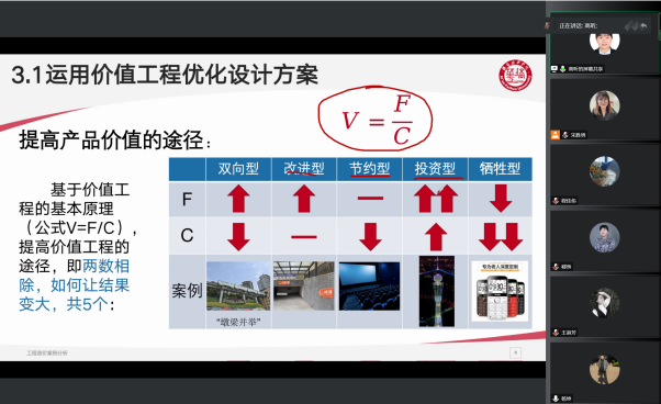 高昕老师分享了《工程造价案例分析》中第三章价值工程的相关内容,主要介绍了价值工程的概念和提高产品价值的途径。知识点讲解详细具体,将理论知识与生动的实际案例相结合,同时也结合了具体的知识点练习题,更有助于学生理解,在教学过程中还加上了一定的辅助标注,提高学生的关注度。