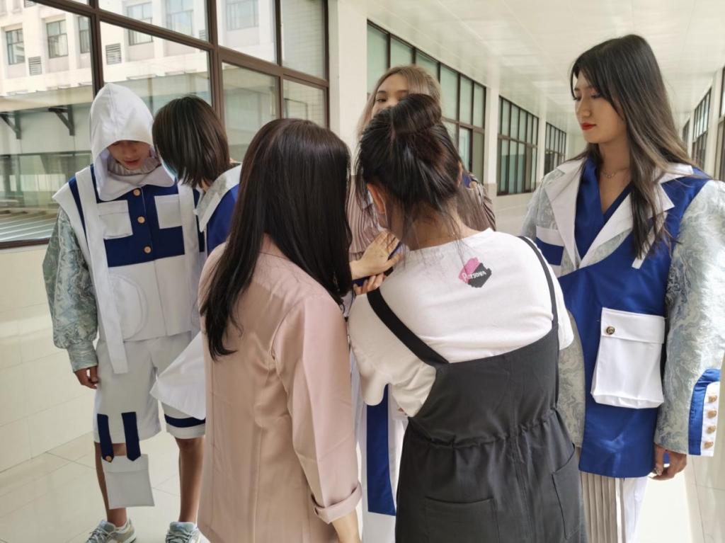 本届毕业设计以“时代”为主题,服装类型包含创意装设计、成衣设计。汇看时,学生向评委们介绍自己的设计理念,由模特穿着设计者的服装进行展示,各位评审老师给予修改意见,帮助学生完善设计作品,为后面的毕业答辩与展示做好准备。部分学生由于疫情原因不能到校,提前将服装成衣邮寄到学校,委托同学代为展示,受委托的同学再将修改意见反馈给设计者,整个汇看过程持续5小时,汇看结束后,评审教师讨论及总结了本次展示。