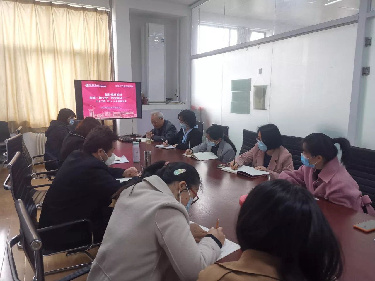 022年3月30日下午,建筑与艺术设计学院土木工程系在6237会议室开展了专题教研活动,教研活动的主题是:结合学校定位,研讨土木工程专业人才培养方案,活动围绕“坚持整体设计,探索微专业培养模式”这一核心思路展开。本次活动邀请建筑与艺术设计学院副院长王虎教授、院长助理刘清颖副教授进行了现场指导,土木工程系全体教师参加会议。