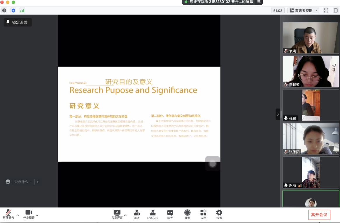 022年1月13日9:00至18:00,视觉传达设计专业利用线上平台组织开展了2022届毕业生毕业设计开题答辩工作。本次答辩由赵丽副教授担任答辩组组长、由专业负责人张鹏主任、专业教师张予阳老师、袁满老师担任评委老师,史晓眉老师担任本次答辩的督导,李瑞堃老师担任答辩秘书。视觉传达设计专业2022届21名同学参加开题答辩。