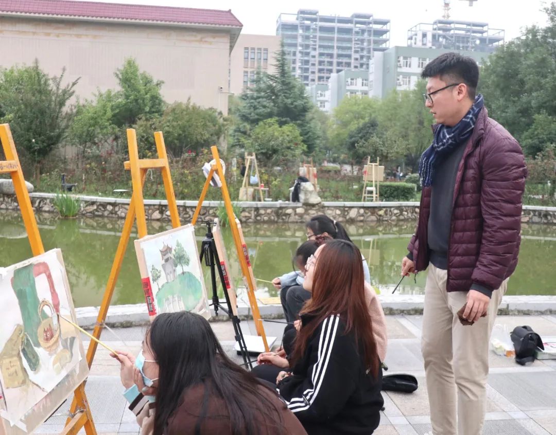 为响应我校“传承红色基因 筑梦百年培华”——庆祝中国共产党成立100周年大会天安门广场庆典红旗捐赠仪式,同时,为纪念姜维之老校长诞辰95周年,在视觉传达专业教师霍东泽老师的带领下,我院2021级视觉传达专业学生在维之园进行课外写生活动。