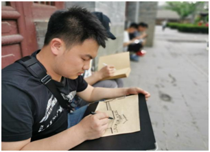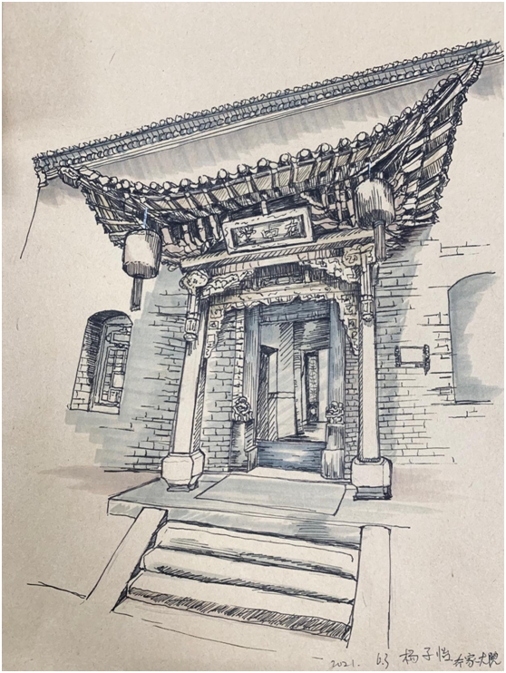 王家大院的建筑格局,继承了中国西周时形成的前堂后寝的庭院风格,既提供了对外交往的足够空间,又满足了内在私密氛围的要求,做到了尊卑贵贱有等,上下长幼有序,内外男女有别,且起居功能一应俱全,充分体现了官宦门第的威严和宗法礼制的规整。同学们在穿过层层建筑群后由上而下领略到建筑的整体面貌,也是在走进各进院落后,深刻感受到当地“土包墙”建筑的独特魅力,同学们找到各自喜欢的节点仔细研究并认真进行刻画。