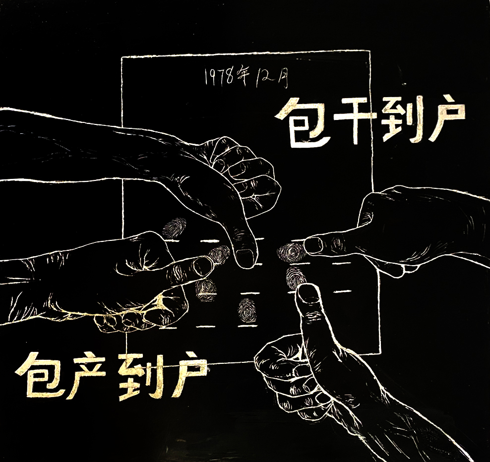 作品画面展现的1978年11月24日小岗村村民签下包干保证书的一幕。通过包产到户、包干到户,解决了十三亿人口的吃饱饭问题。民以食为天,在改革开放之前,广大人民群众都还在为吃饱饭而奋斗。这是一个了不起的成就,与我国国情相似的印度至今没有解决这个问题。