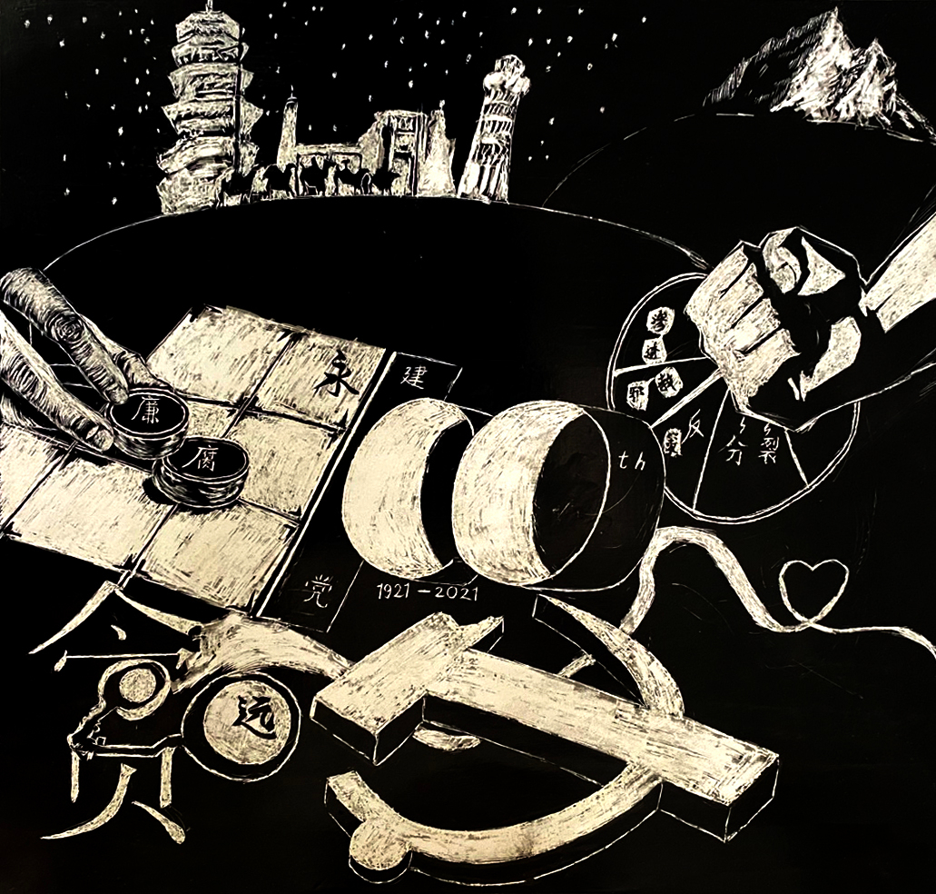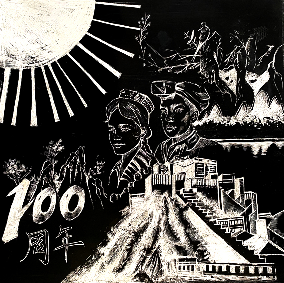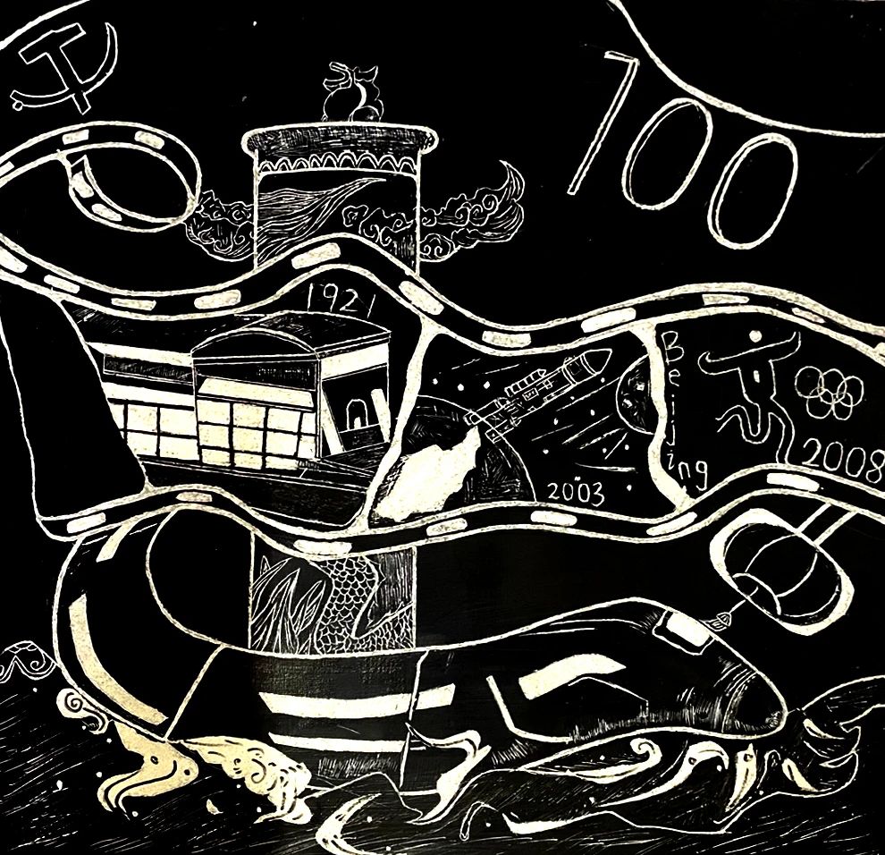 指导老师贾亚丽老师表示,通过黑白墨刻的方式回顾历史,不仅是缅怀党的光辉业绩,更重要的是着眼新世纪。建艺学子作为新世纪的青年,作为成长中的一代、改革中的一代、开创未来的一代,要肩负起党和祖国人民的重托,重塑这东方巨龙的雄姿。祖国的建设离不开党的领导,也少不了青年一代的创造和奋斗!