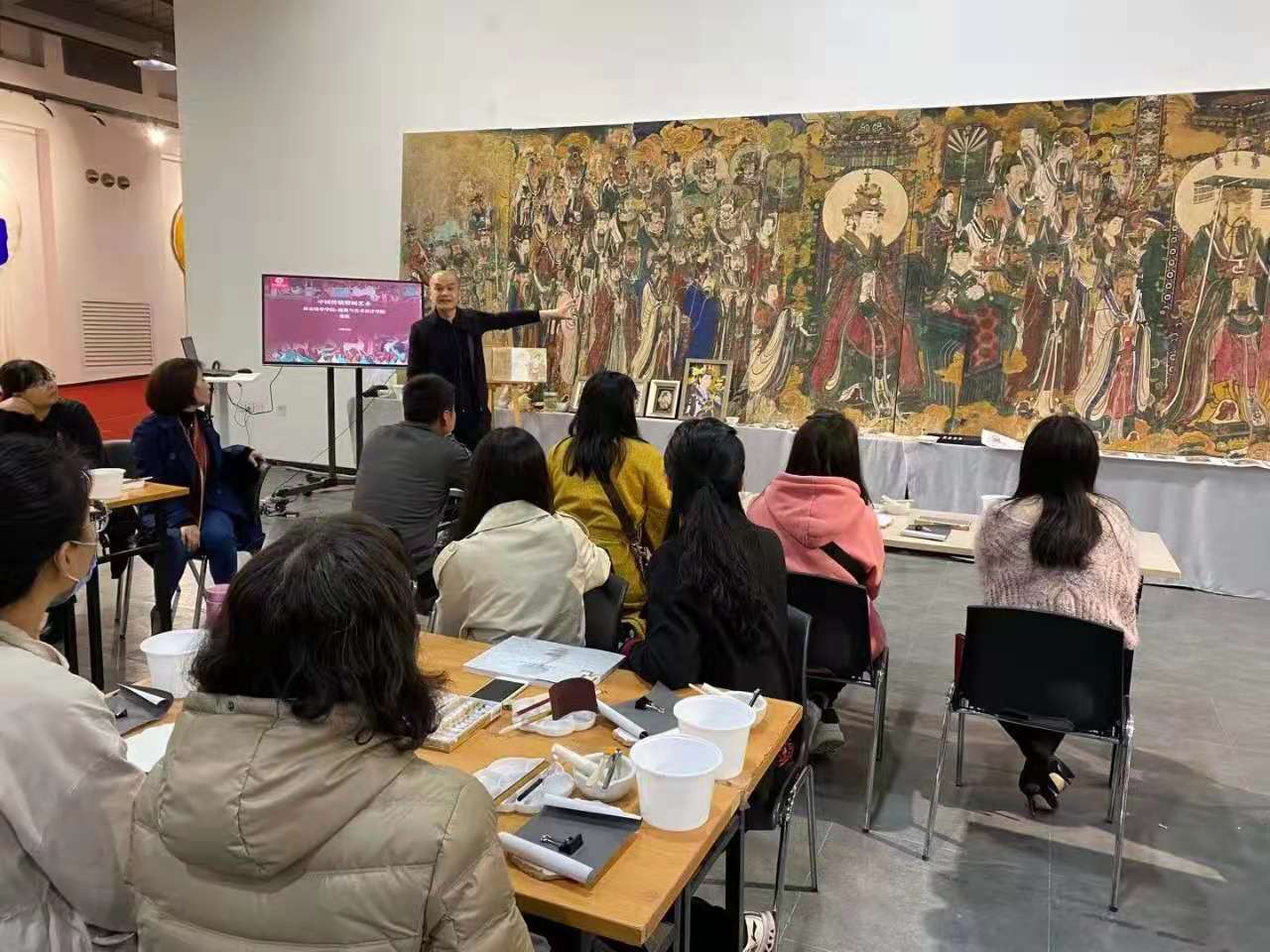 为增加我校校园艺术文化气氛、弘扬中国传统文化,增进教师之间的艺术交流、讨论,激发大家对传统艺术的关注和了解。我院于2021年4月21日下午主办本学期第二期教师沙龙活动,张钦老师结合自身多年壁画教学及丰富的实践经验,以敦煌壁画为主题,让每位教师在现场用亲自临摹绘制的方式,更全面的体验与感受这种伟大的艺术。