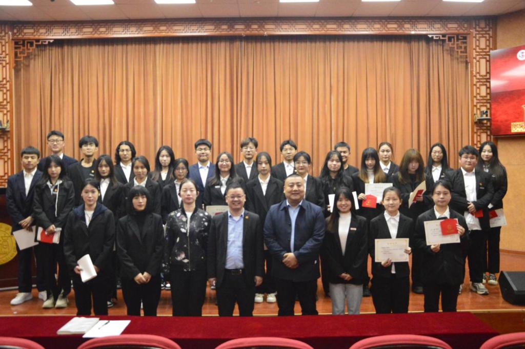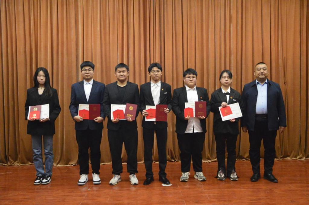 建筑与艺术设计学院党委副书记兼一站式服务站站长南斌红为获奖学生颁奖