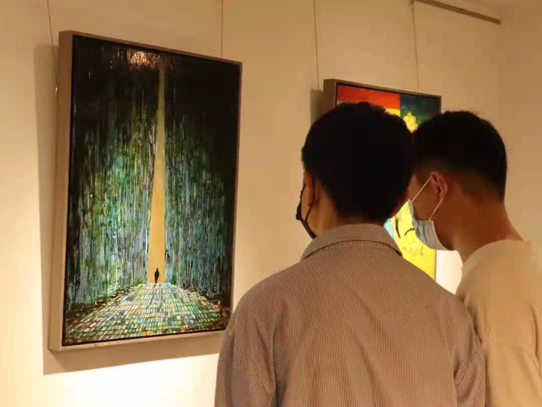 著名画家、学者、美术学博士石头娃教授发言。石教授首先感谢培华师生创作出这么多优秀的作品,作品也体现出艺术家思想的迸发。同时,石教授还指出基本功对于艺术家的重要性,一个优秀的艺术家理论基础也非常重要,不仅要基本功过硬,还要打好良好的理论基础,这样才可以做出完美的作品呈现给世人。