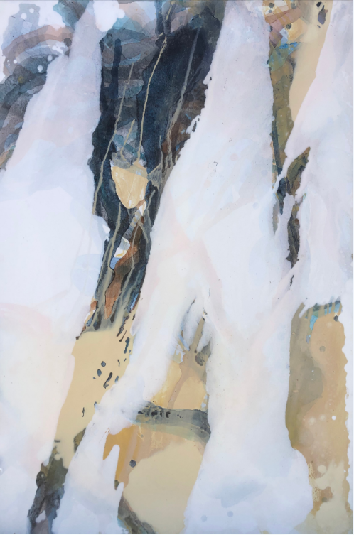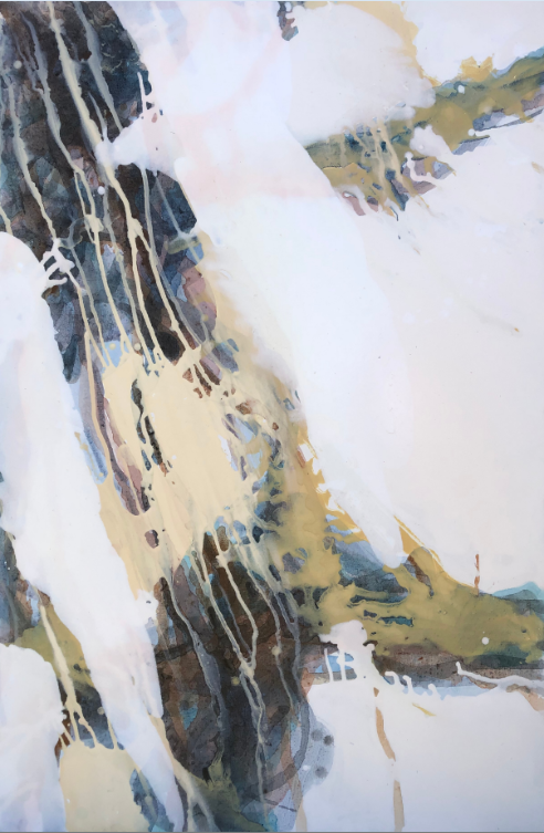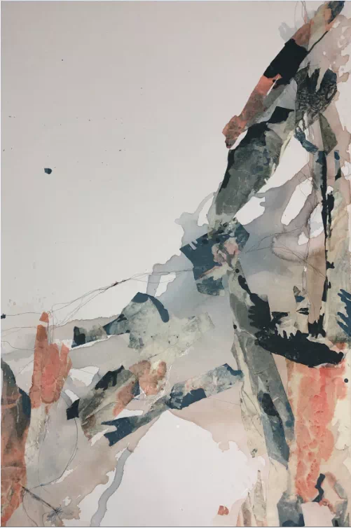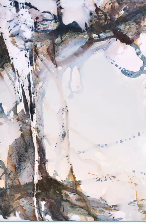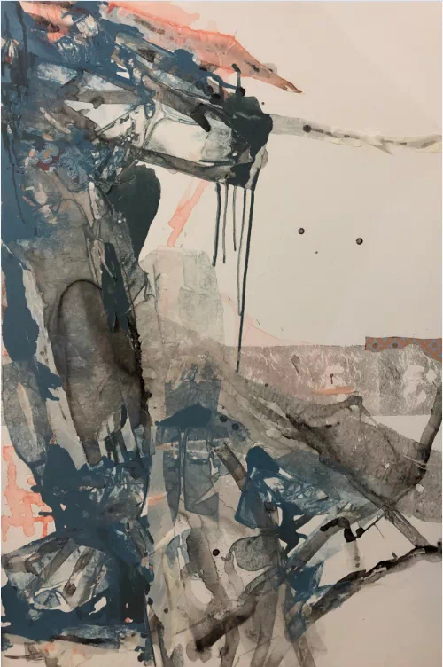 霍东泽近期的抽象绘画,以其强烈的视觉张力营造出一种摄人心魄的气势。多为倾斜甚至近乎垂直的构图,在急速流动和肆意碰撞的色彩的呼应下,让画面产生一种奇绝壮观甚至危机四伏的效果。这种效果在大面积虚境空间的衬托下显得尤其奔放和张扬。似有似无的笔触和层层流淌覆盖的色彩又在暴力冲突之中透出某种抒情性和诗意感。他的作品中虽然有着行动绘画的底子和影子,但又毫不掩饰地展现出源自中国书写性写意抽象的痕迹。线条任性挥舞之间细腻的层层渲染、虚实空间之间的对抗平衡、或隐或现的意境暗示,都指向了中国绘画的传统。不同传统的诸多因素在他作品中以独特的方式杂合再造,创造出他个人的抽象思维和视觉表达方式。在2017年纽约室内设计学院画廊举办的《对话中的抽象艺术》展览中,霍东泽偏重书写性的抽象作品与美国艺术家偏重结构性的抽象作品,形成了鲜明的对照。在全球艺术家对抽象艺术发起新一轮探索的当代语境中,书写性抽象无疑为抽象艺术的发展提供了一种无法忽视的可能性。