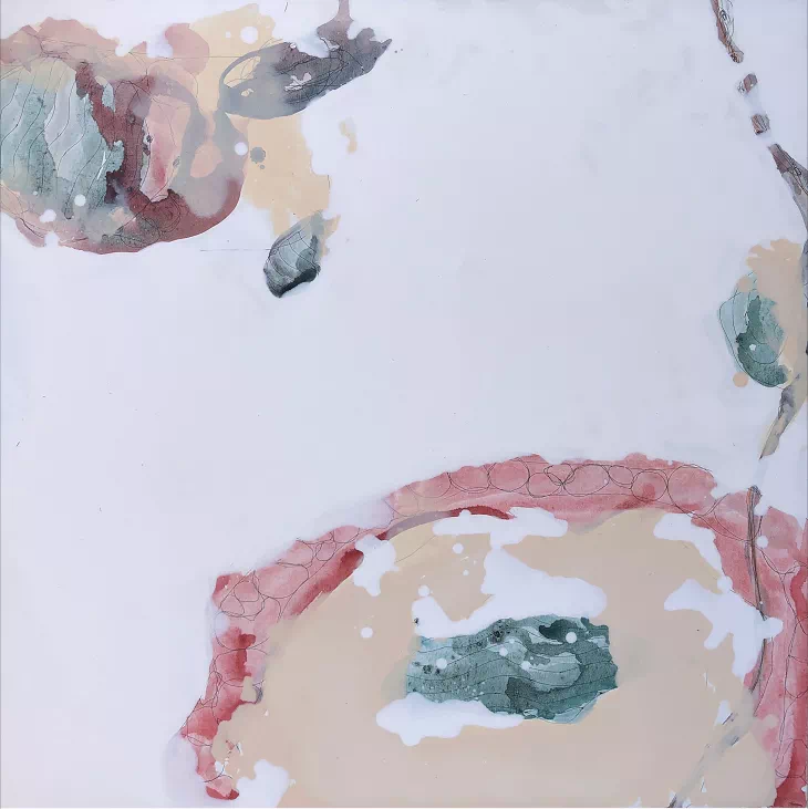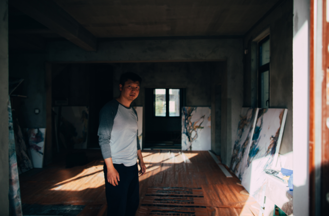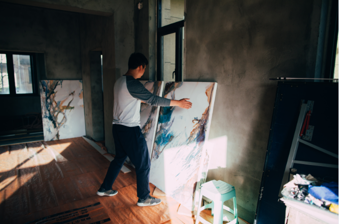 霍东泽的创作,将我们作为观者回归到“看”(see)的行为状态,并以生理的无意识(biological unconsciousness) 感受颜色的重叠、冲撞、蔓延与消逝,如此凝视、清空思维的过程,与我们不自禁地保持儿时习惯:凝视天空中云与气象的流转变化,忘记自身的物理存在,何尝不是一个过程。