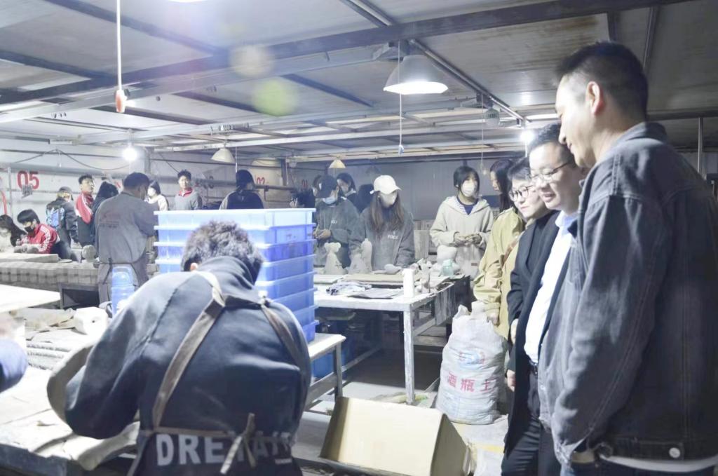 在考察中,王飞院长等一行深入学生实训生产车间、师生餐厅、宿舍,详细了解基地有关情况,对实习基地实习环境、实训教学内容安排、住宿条件、伙食标准等方面给予了肯定。并要求带队老师要切实负起责任,确保写生期间学生们的饮食安全和交通安全,同时要求学生珍惜外出实训机会、认真学习、专心创作,以高质量的作品圆满完成实训任务。