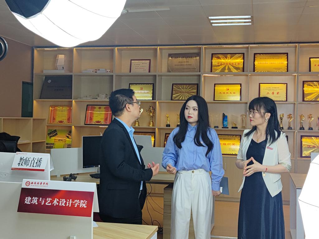 随后,土木工程专业系主任刘杰老师与土木工程专业副主任段晓晓老师进行对话。段晓晓老师为我们介绍到了西安培华学院土木工程专业所开展的多项课程并带领着直播间观众们参观和介绍西安培华学院土木工程专业在参加全国高校BIM毕业设计创新大赛等比赛中所获得的奖杯。通过参与专业比赛,达到以赛促学,以赛促教的目的。土木工程专业组织学生以团队形式参赛成立专业相关社团,社团活动主要依托实验教学中心开展。我校的土木工程专业实验教学中心也获批为陕西本科高校省级实验教学示范中心。