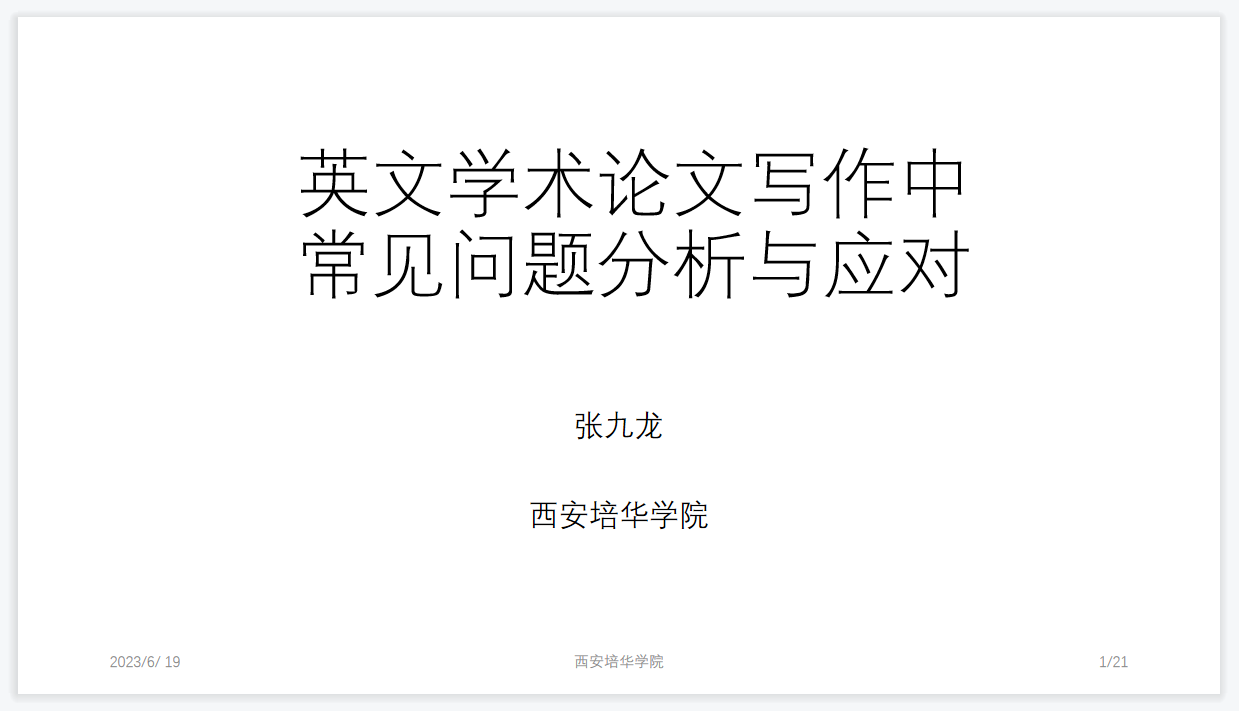 张九龙副教授从语言及内容两个方面切入剖析引文学术论文写作中的常见问题:语言方面的问题包括语言低级冗余、汉语组织能力不佳、语序前后不当等;内容方面的问题包括引言逻辑条理性不清晰,导入文章主要思想语句不醒目;相关工作组织结构不够完整;贡献点描述不充分,语言不够有说服力;摘要、结论、标题需改写等。
