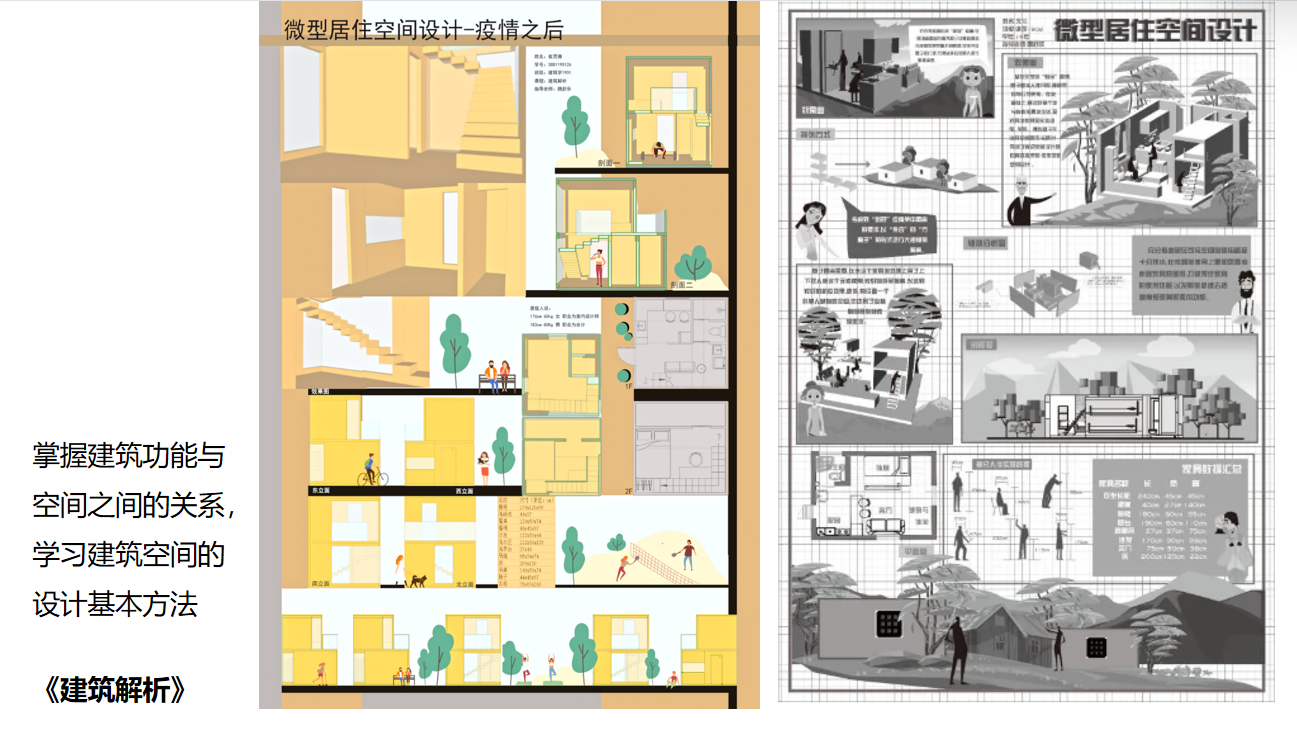 专业核心课程均采用 “小班专业教室授课”,通过专业热点选题机制、studio的教学机制、全体汇报+小组研讨的辅导机制、阶段快题+终期答辩的考核机制等,调动和激发学生的积极性和创造性,充分发挥学生的主体作用和教师的指导作用,变被动教学为主动实践,实现学生从低年级的基础学习到专业学习的飞跃。