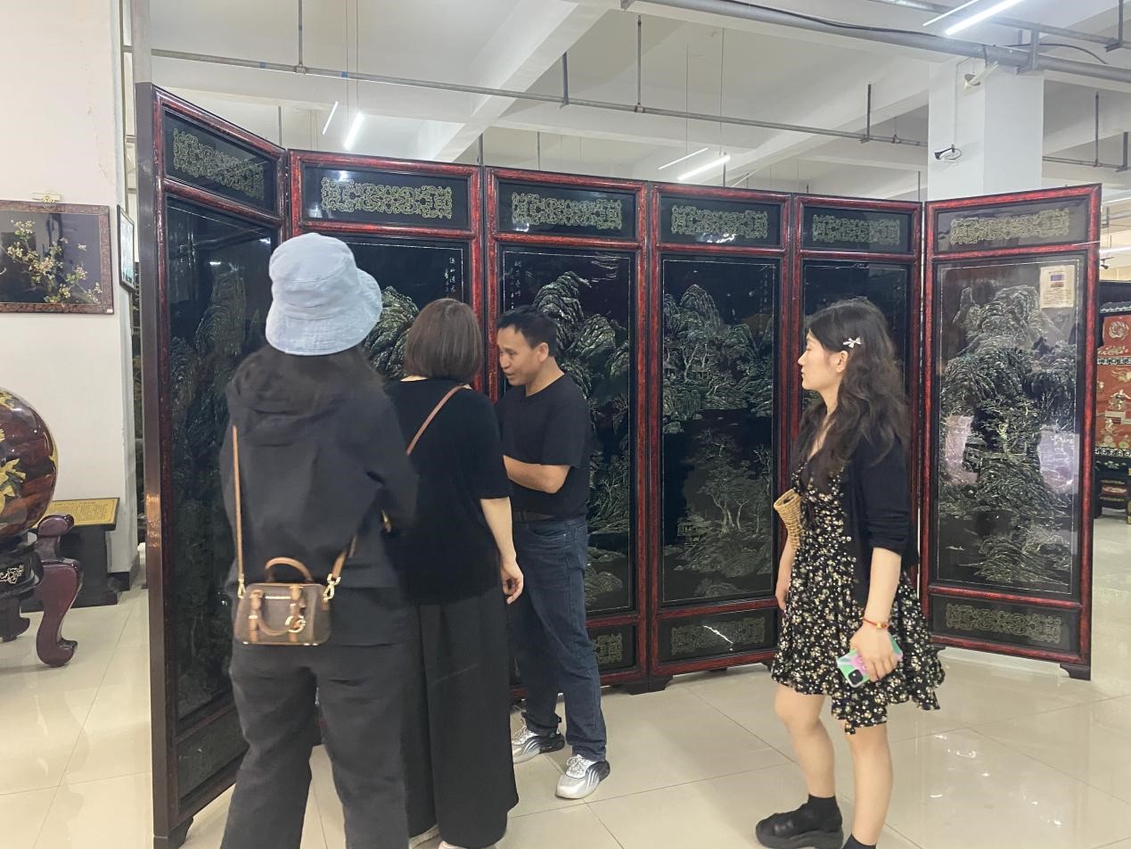 第二站天水雕漆厂,天水雕漆历史悠久,可上溯至2000多年前。雕漆工艺有镶嵌、雕填、彩绘、平磨、曝钿、描金、胎花、藏绘、印锦、脱胎、刻绘、线金堆漆、研磨彩绘等。