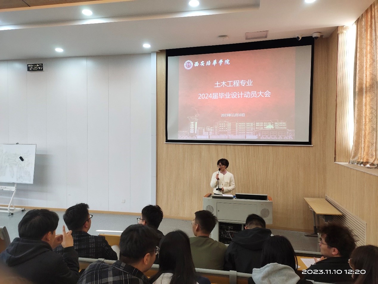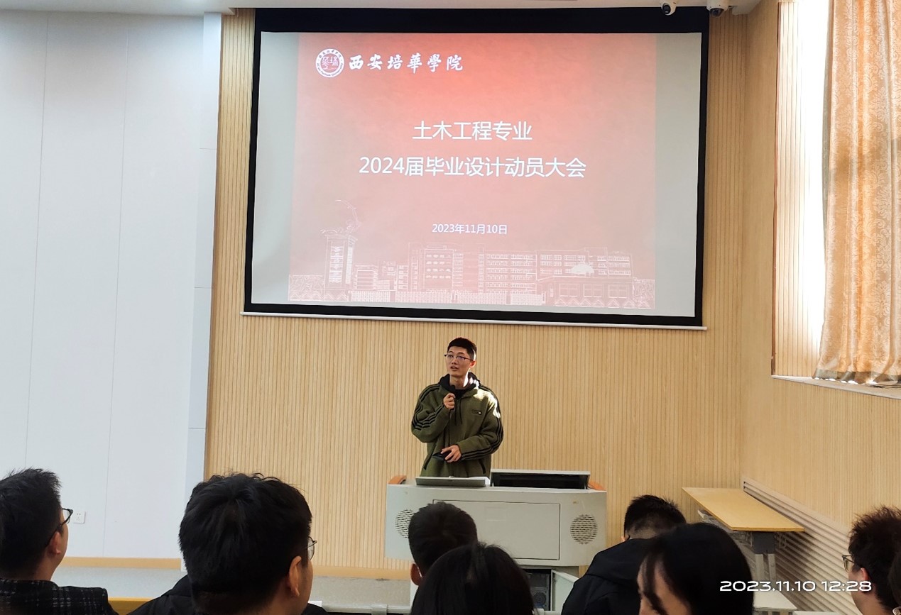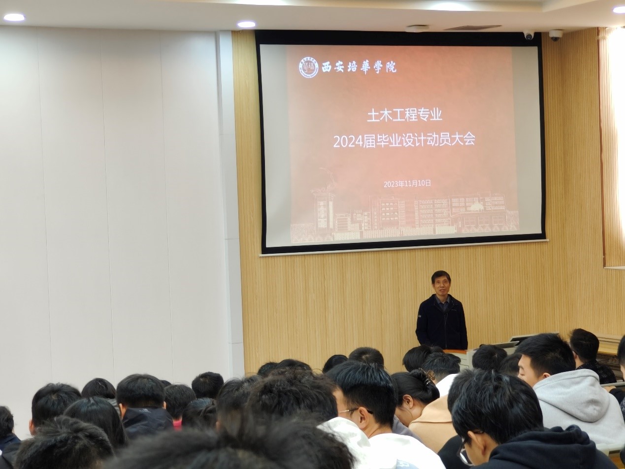 为进一步完善土木工程专业毕业设计指导工作,搭建良好的师生沟通桥梁,提高学生理论与实践相结合的能力,2023年11月10日,建筑与艺术设计学院土木工程专业在3505教室组织召开了2024届毕业设计动员大会。