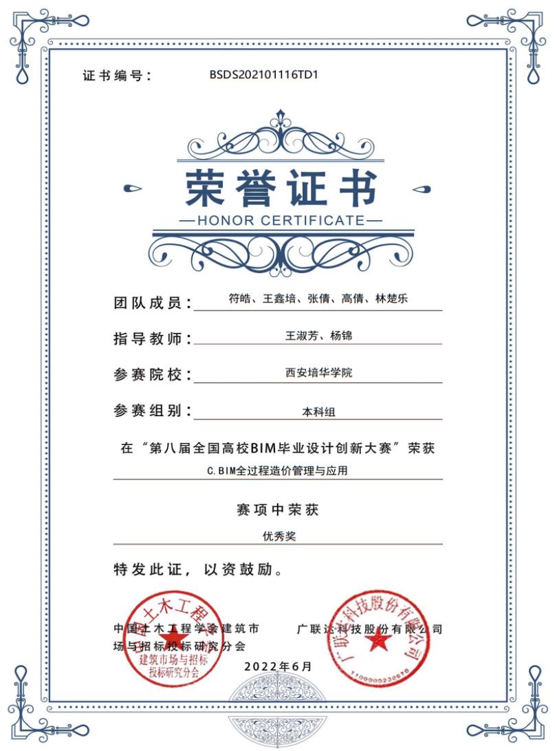 C模块“BIM全过程造价管理与应用”优秀奖