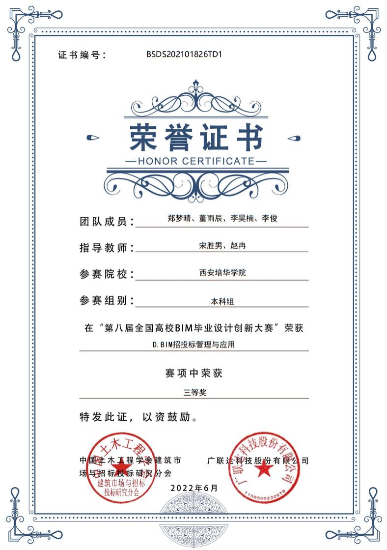 D模块“BIM招投标与管理应用三等奖”三等奖