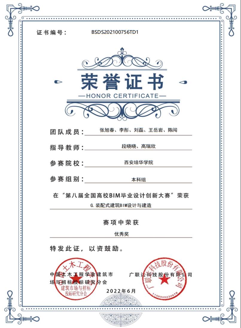 G模块“装配式建筑BIM设计与建造”优秀奖